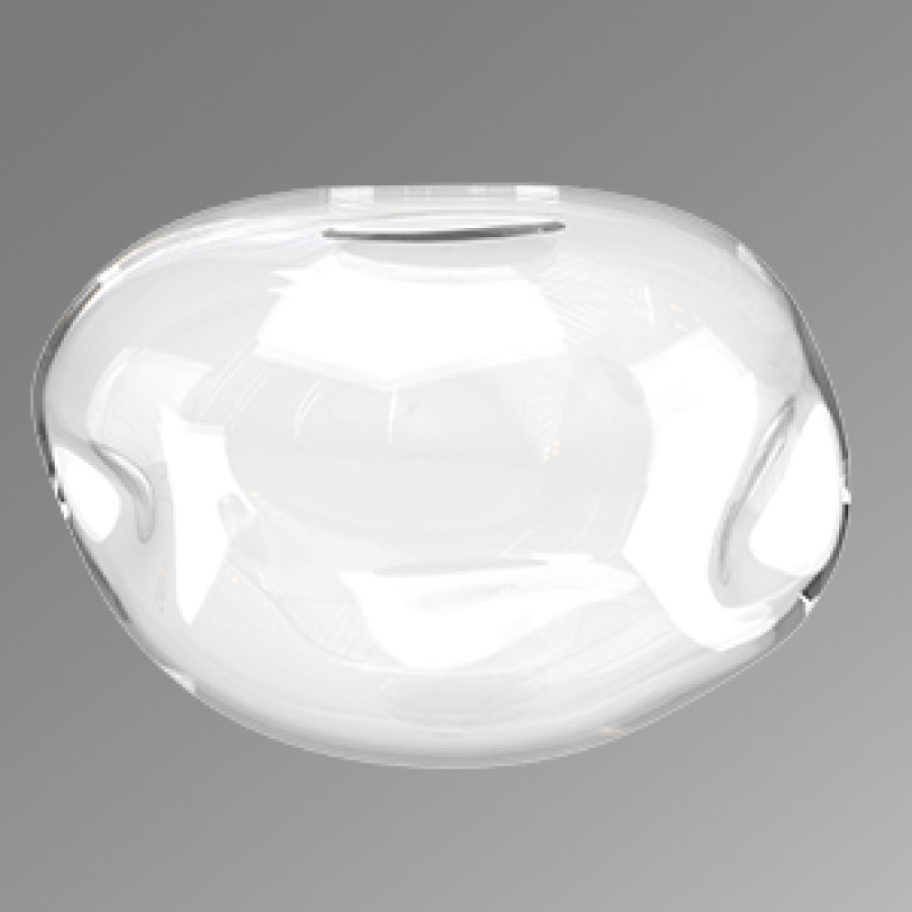 The Nebula Nova Pendant features a softly undulant 10”W oval shade in artisan blown crystal glass with an LED-illuminated cast crystal glass diffuser in a choice of three styles.