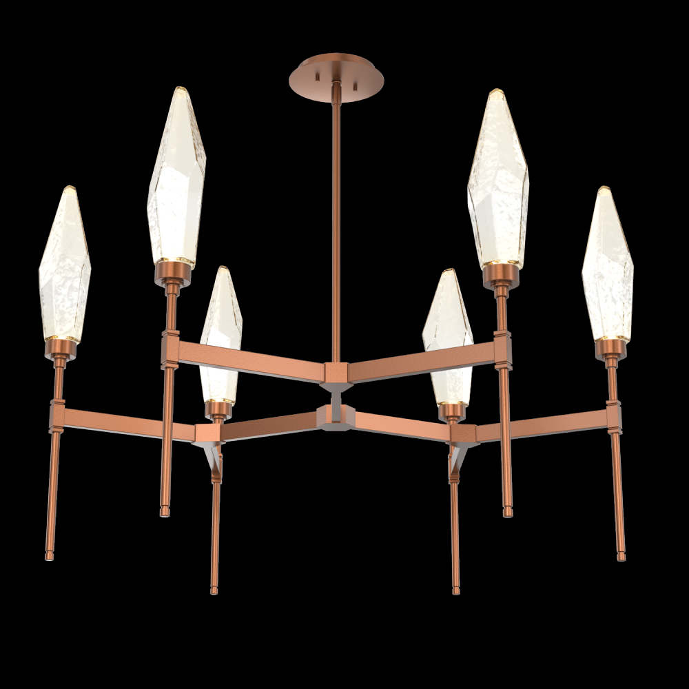 Rock Crystal Round Chandelier - 37 - Burnished Bronze - Chilled Blown Glass - Amber - Threaded Rod (24,12 (2x),6,3) - LED - 3000K