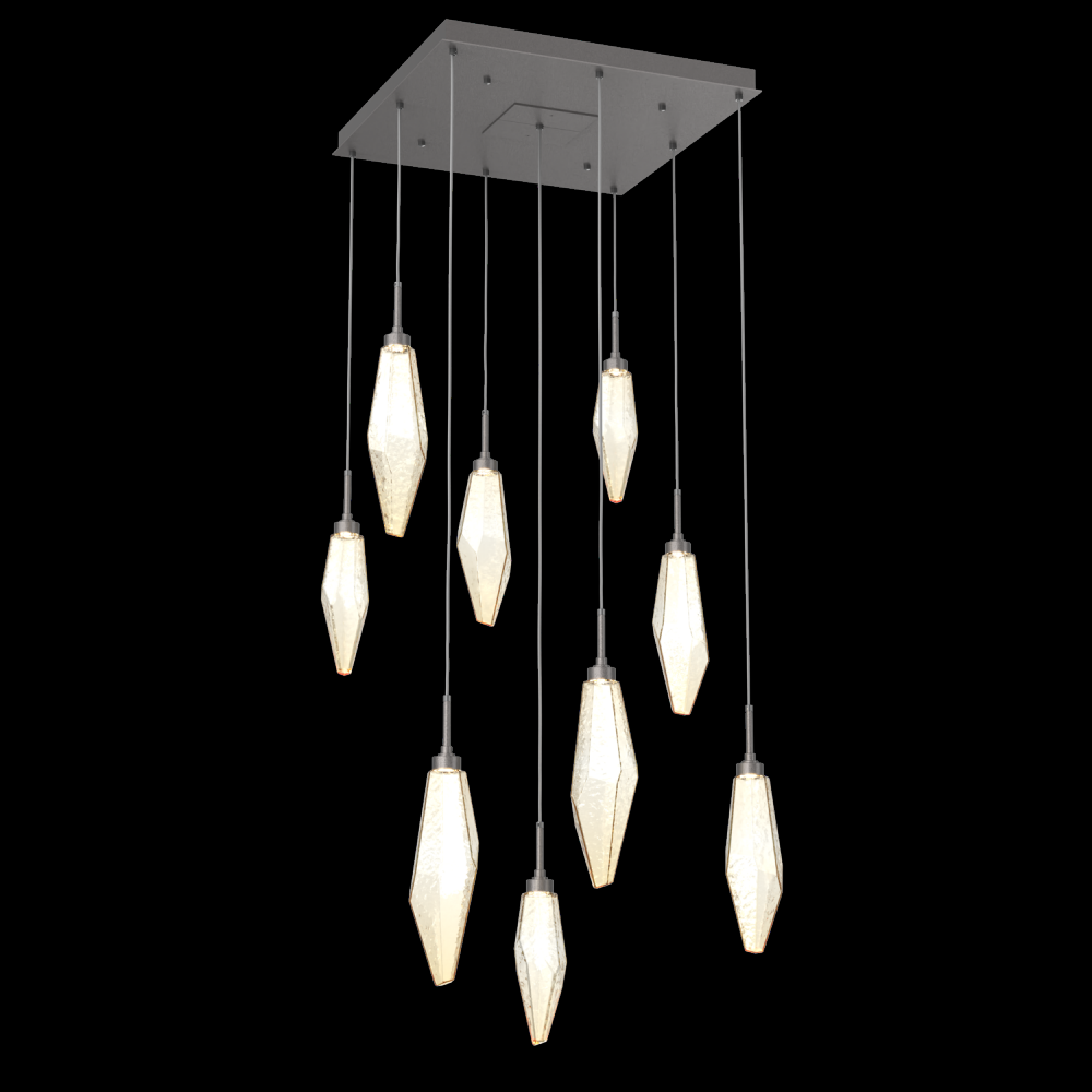 Rock Crystal Square Multi - Port - Graphite - Chilled Blown Glass - Amber - Cloth Braided Cord - LED - 2700K