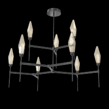 Rock Crystal Round Chandelier - 54 - Gunmetal (Translucent) - Chilled Blown Glass - Amber - Threaded Rod (24,12 (2x),6,3) - LED - 3000K