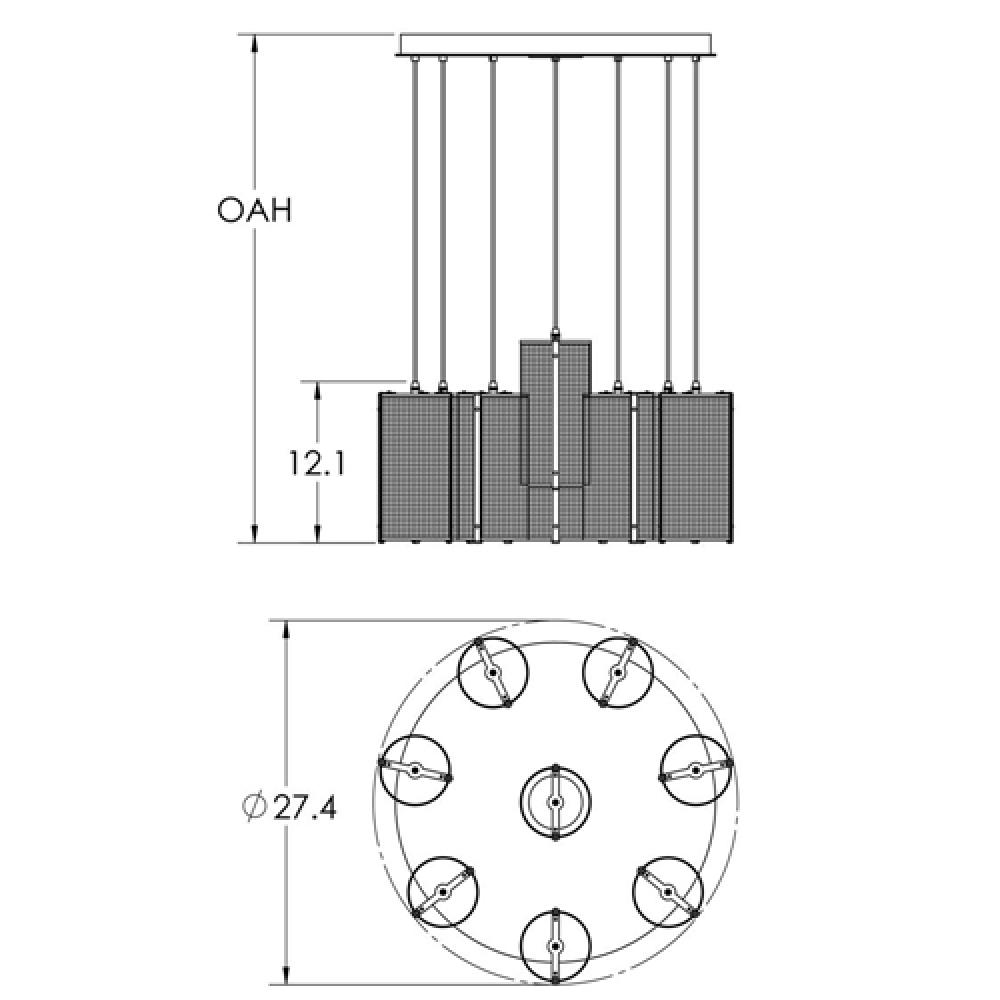 Uptown Mesh Round Multi-Pendant-08-Burnished Bronze-No Lens, Exposed Lamping-Cloth Braided Cord-LED 2700K