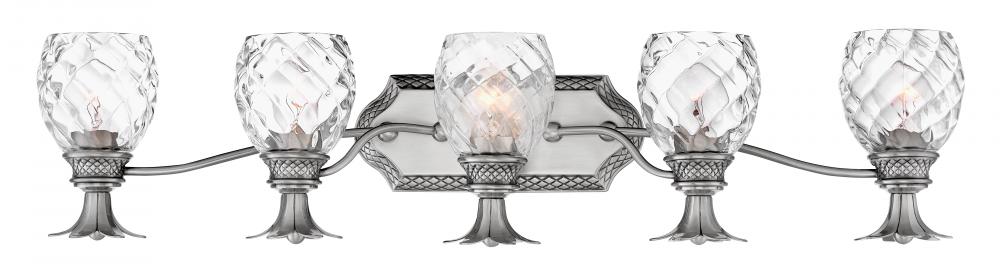 A Hinkley classic, the ornate Plantation collection features exceptional pineapple shaped, clear optic glass that makes a noble statement. The elaborate, decorative cast detailing is accentuated by its lush finish.