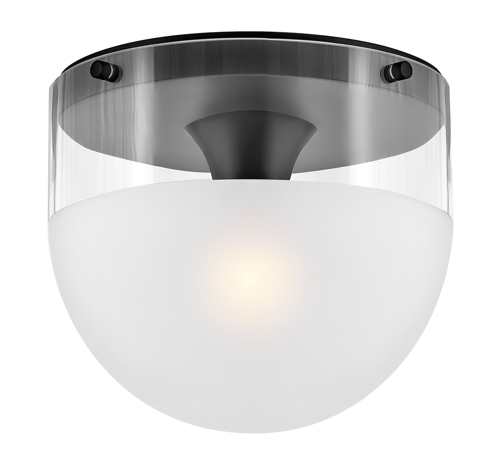 Beck's transitional style is reinforced by a smooth Lacquered Brass or Black finish paired with an etch-dipped glass shade offering texture and visual interest.