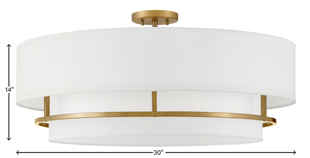 Handsome Graham is understated elegance, crafted with unique details making it the ultimate transitional semi-flush mount. Its welded frame is nestled between two off-white shades, in luminous faux parchment with a finished cluster visible from below. Graham is available in multiple finish options.