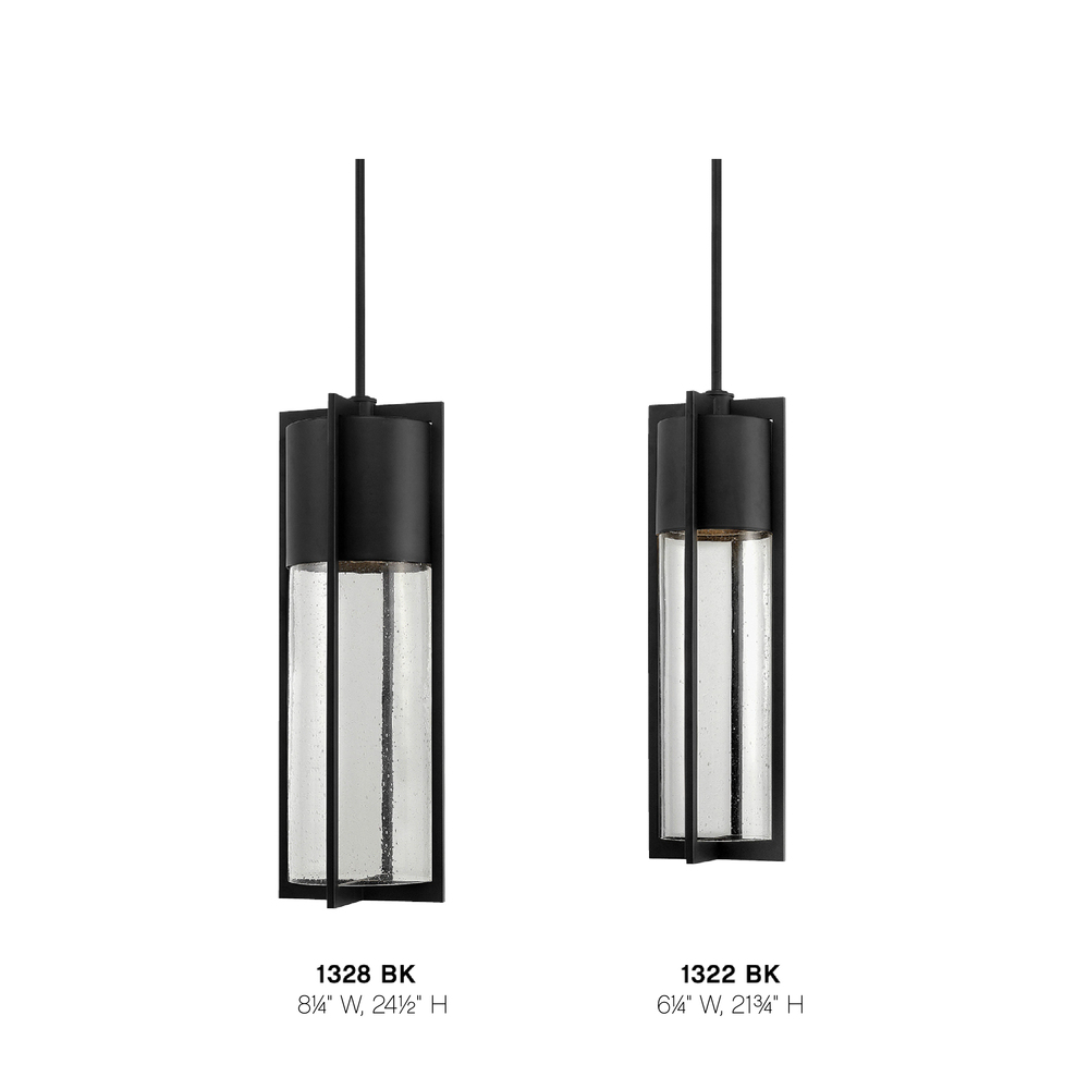 Shelter’s minimalist style in aluminum creates a chic, dramatic statement as the light from above grazes through its clear seedy glass. Shelter comes standard Dark Sky compliant.