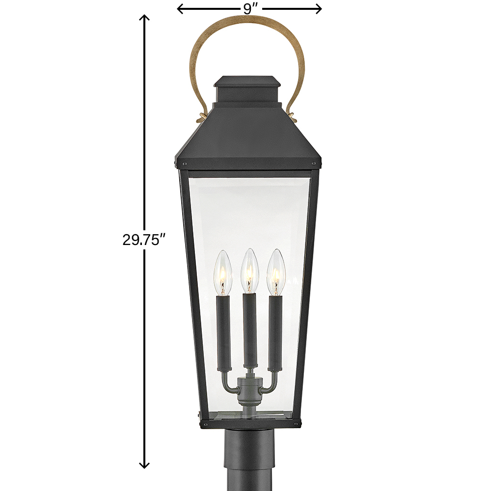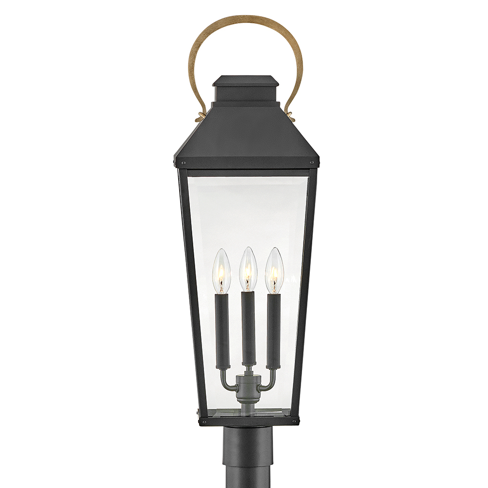 Dawson flaunts a versatile design with flair. A slightly tapered silhouette reveals simple lines that seamlessly frame clear beveled glass. Constructed of durable aluminum in Black, Dawson is complete with an oversized arching handle in a contrasting Burnished Bronze finish, reinforcing its transitional appeal.
