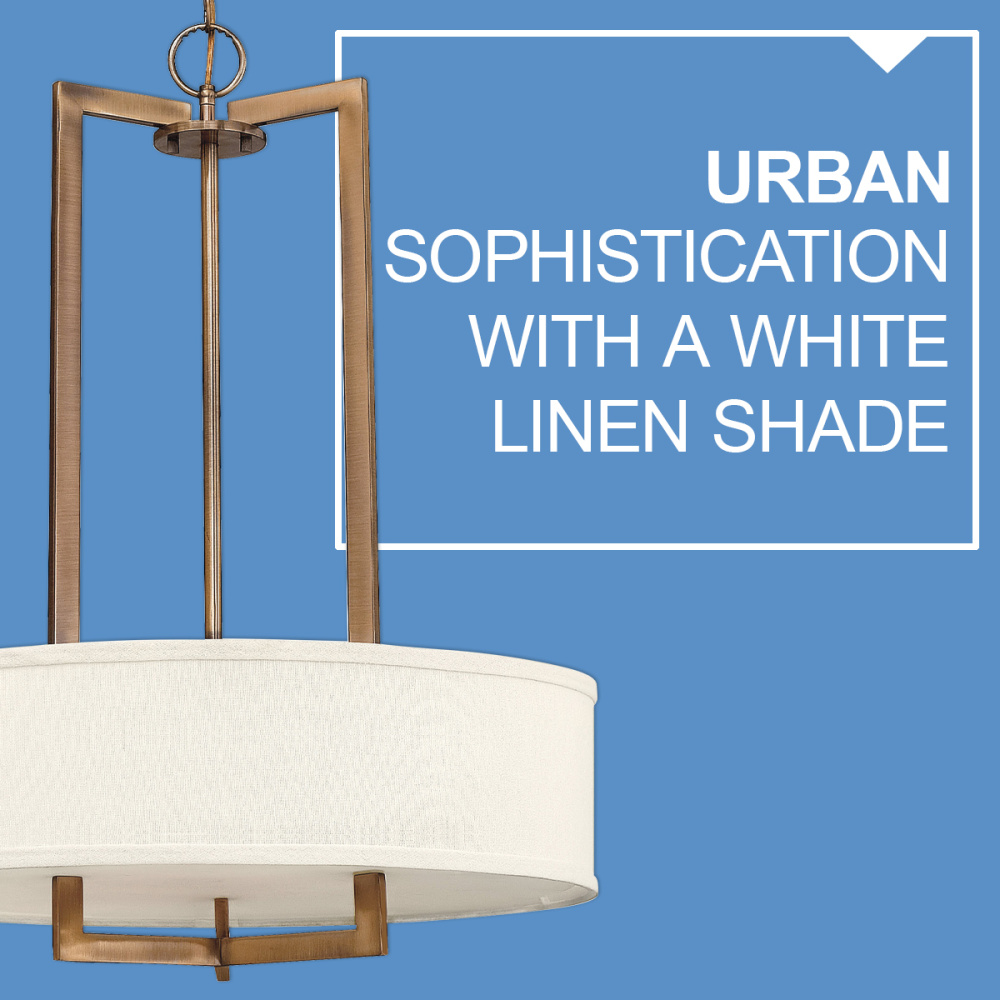 Hampton is a modern transitional design, offering the ultimate in urban sophistication. The minimal, rectangular frame is softened by a contemporary off-white linen drum shade.