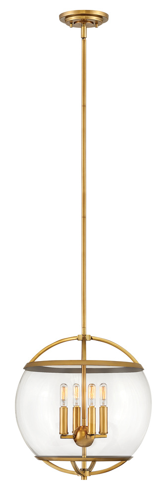 The wide glass band featured in Calvin clearly has global appeal, but the sphere of influence does not stop there. The orb is completed by the rounded, open cage on top and bottom to add style and stability. This mid-century modern silhouette in Heritage Brass or Black with Heritage Brass finish encloses a classic candle cluster.