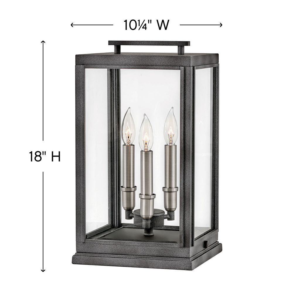The Sutcliffe collection conveys chic elements of early Americana styling. The candelabra lamping and clear glass, paired with an accent reflector, infuse this sleek pocket lantern design, constructed of solid aluminum, with a perfect blend of old and new.