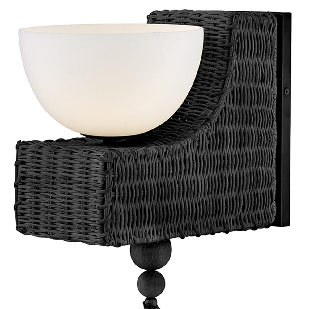 Named after a beach in Laguna, California, marked by a single, large palm leaf umbrella in the sand – Thalia’s distinctive, whimsical woven design evokes the relaxed, carefree spirit of coastal living. Natural raffia is complemented by a shallow opal glass bowl, and a playful tassel adds a fun bohemian touch that can be removed for a more streamlined look.
