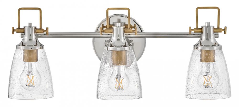 With style elements that blend both hip and historical, Easton exudes a modern industrial vibe. Bold, clear seedy glass shades pair with a distinctive top yoke and vintage-inspired knobs for a robust silhouette.