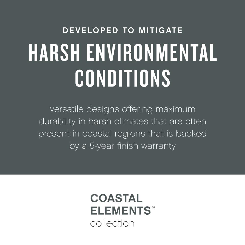 Republic's striking double frame design, constructed from a composite material and treated with an anti-fading agent for maximum durability, is at home on the coast or a country lodge. The Oil Rubbed Bronze, Satin Nickel and Black resilience finishes feature a 5-year warranty and are resistant to rust and corrosion. Vintage filament bulbs are recommended to complete a stylish look.