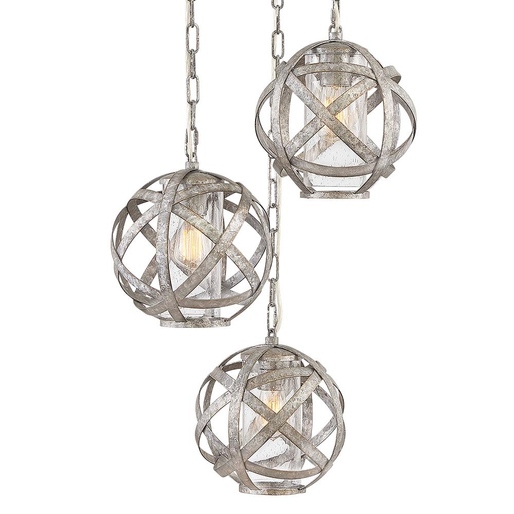 Carson features bold overlapping metal ribbons of Vintage Iron or Weathered Zinc, enhancing an outdoor living area with style and substance. The hand-crafted pendants combine a hint of industrial sophistication with the allure of artisan craftsmanship.