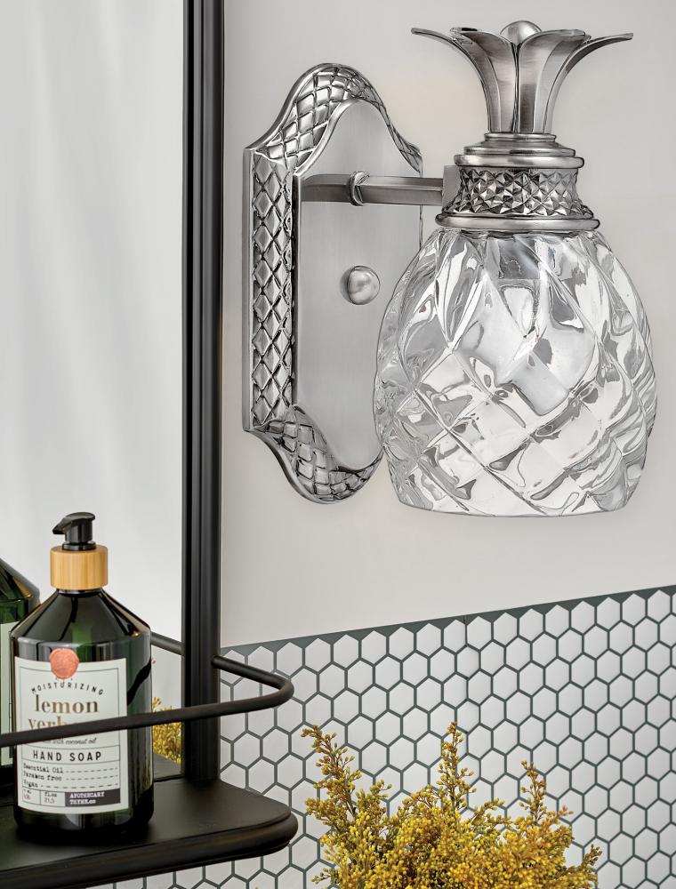 A Hinkley classic, the ornate Plantation collection features exceptional pineapple shaped, clear optic glass that makes a noble statement. The elaborate, decorative cast detailing is accentuated by its lush finish.