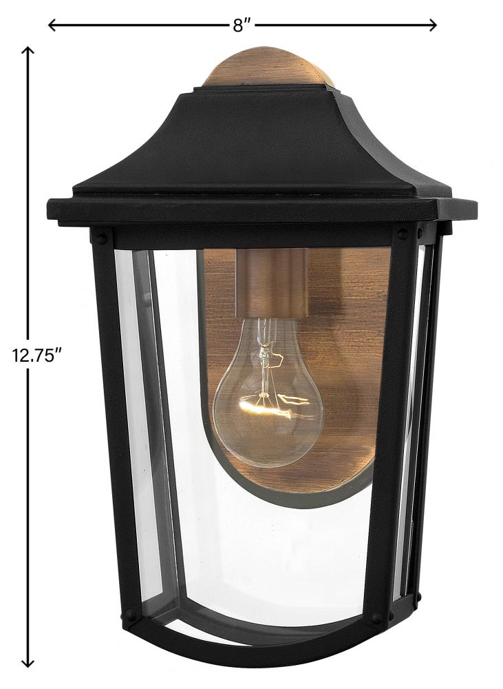 Burton’s classic cast aluminum construction in a robust Black finish is complemented by elegant touches. The distressed copper accents on the backplate, roof and socket cover paired with clear beveled glass complements the traditional styling.