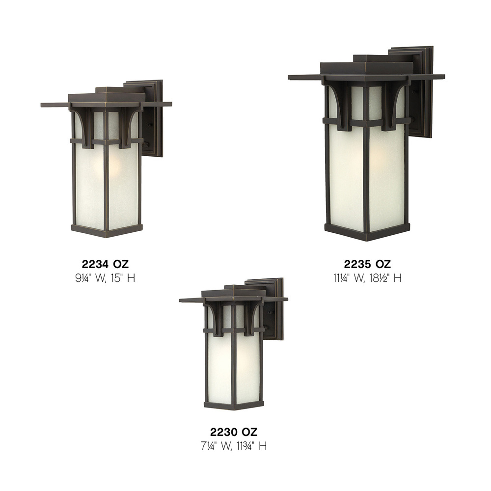 Manhattan is a classic update to the traditional train station lantern. The hand-painted Oil Rubbed Bronze finish complements the clean lines of its durable die-cast construction.