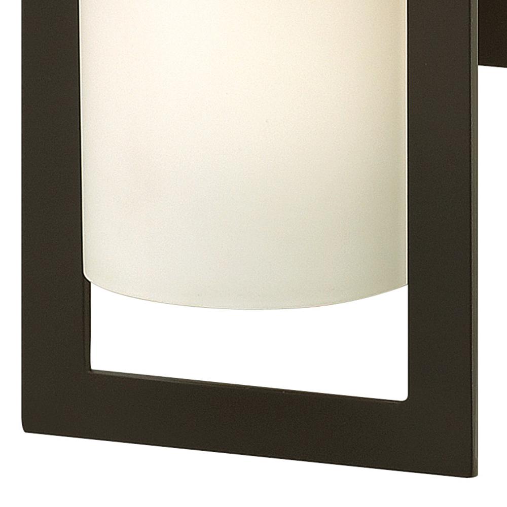 The sleek lines of Colfax feature intersecting planes of solid aluminum and a chic cylinder of etched opal glass to create a sophisticated geometric form. The die-cast aluminum construction in a Bronze finish brings an Arts & Crafts flair to the transitional design.