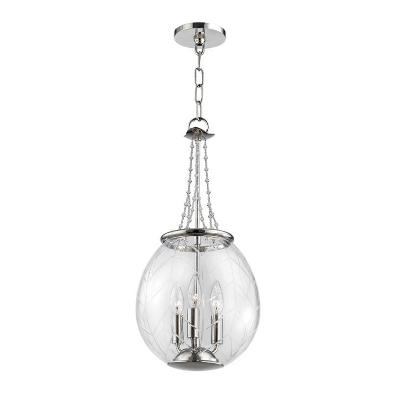 In many iconic chandeliers of 1920s Paris, strings of beaded crystal would swag out from the canopy, meeting a rim that would suspend an opulent demi-globe. Pierce tips it hat to those grand chandeliers while taking off in a bold new direction. A hand-cut chevron pattern, inscribed on a globe, encloses candelabra bulbs. People have been using chevron patterns on things since at least 1800 BC. Over the past couple of years, the fashion world’s creative application of it has resulted in renewed popularity. Like the allure of crystal, chevron’s visual kinetic pull is timeless.