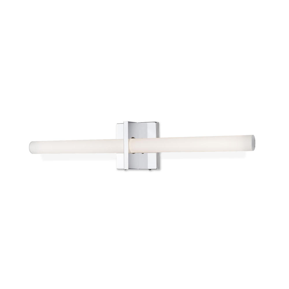 Inspired by steel construction beams the round opal tube contrasts with the perpendicular metal planes of the wall mount. The cylindrical LED light intersects and is captured by the thin rectangular projection, spreading the illuminance further from the surface. The complementary geometric forms produce a subdued yet decorative effect.