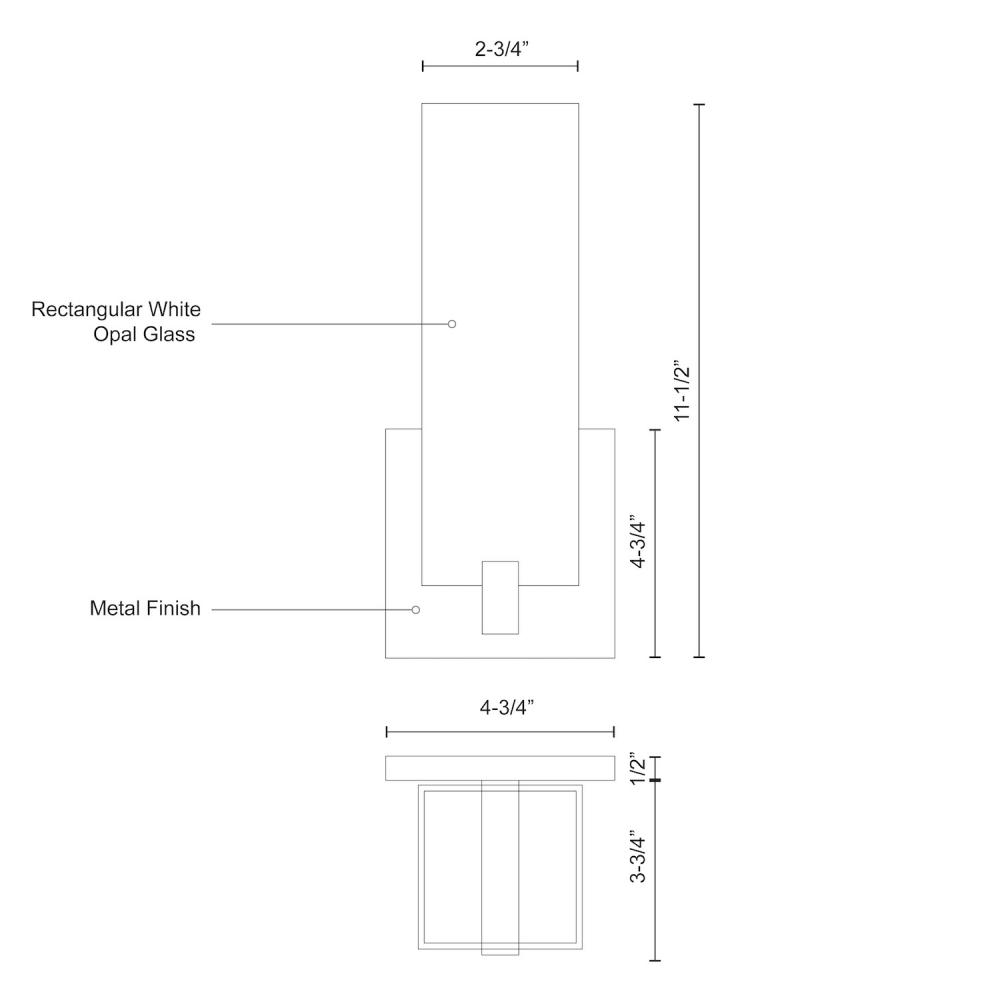 Single lamp LED wall sconce with square shaped white opal glass, metal details in brushed nickel or chrome finish, and is equipped with our powerful 12V AC LED technology