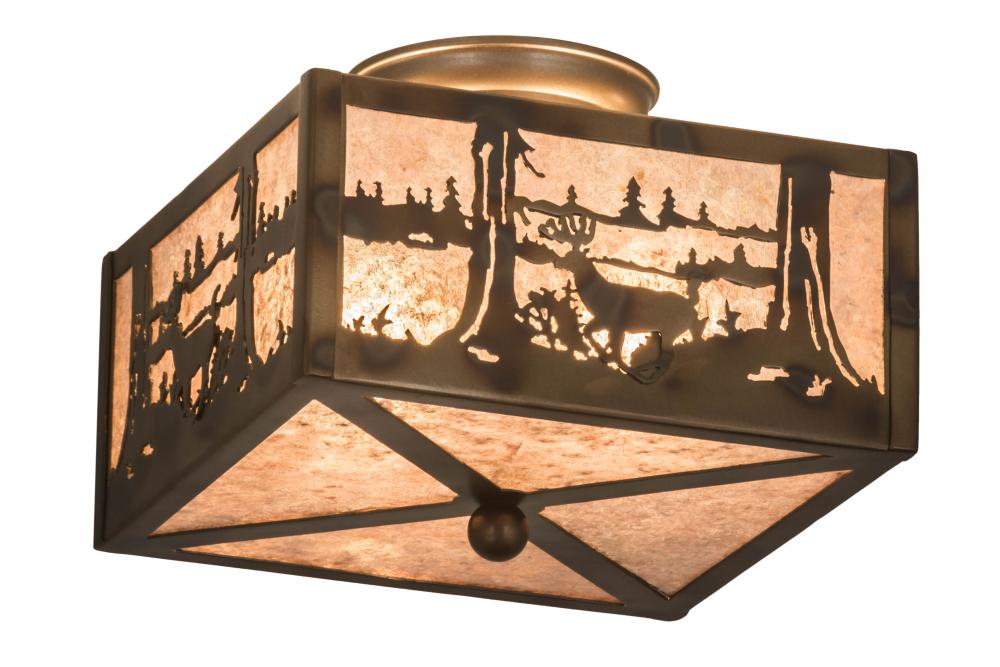 A stunning design depicts a Deer gracefully leaping across the lakeside woods as the sun sets in the backdrop of this eye-catching scene. Beautiful ambient illumination shines through Silver Mica; which is complemented with hardware; frame and decorative accents featured in a Dark Burnished Antique Copper finish. This oblong pendant; which is perfect for lighting an island; counter; bar; billiard/dining table or other space; is handcrafted by highly skilled artisans in our facility at the foothills of the Adirondack Mountains. This fixtures and others are available in custom sizes; shapes and profiles. Dimmable energy saving lamp sources such as LED are available. The ceiling fixture is UL and cUL listed for damp and dry locations.