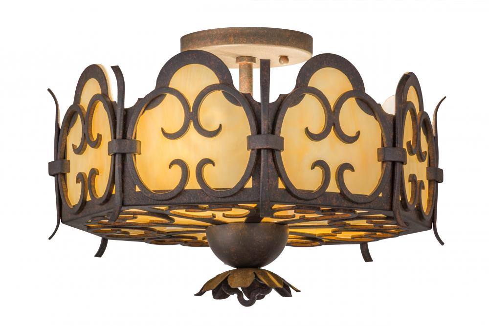 Dramatic elegant scroll designs are highlighted on 8 side panels and the bottom diffuser of this beautiful fixture; which is featured in stunning Beige art glass. The scrolls; decorative accents; floral finial and matching hardware are all featured in an exquisite Cajun Spice finish. Handcrafted in our 180;000 square foot manufacturing facility in Yorkville; New York. This chandelier is available in custom sizes; styles and finishes; as well as dimmable energy efficient lamping options such as LED. UL and cUL listed for damp and dry locations.