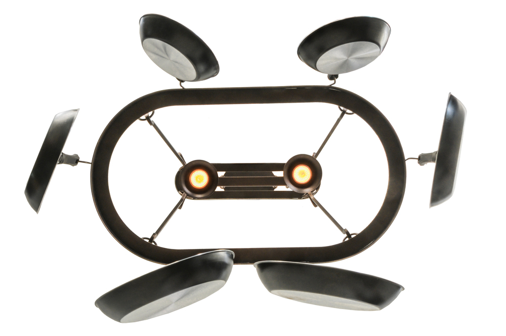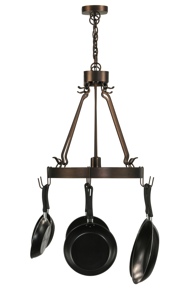 Rustic charm marries functional elegance with the Harmony Lighted Pot Rack. The functional oval-shaped lighted fixture features Mahogany Bronze finished hardware which is enhanced with hooks to display fine cookware and accessories. Two Medium base downlights deliver functional illumination over kitchen islands and other surfaces. The overall height ranges from 24 to 71 inches as the chain length can be adjusted in the field to accommodate your specific lighting application needs. Handcrafted by highly skilled artisans in our 180;000 square manufacturing facility in Yorkville; New York. Diffuser colors; metal finishes and fixture sizes can be customized. UL and cUL listed for dry and damp locations.