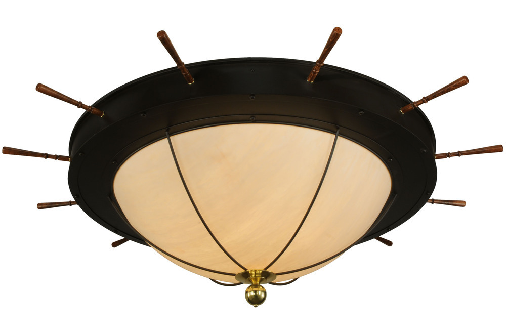 This hand crafted Meyda Tiffany original stained glass window of Woodland Brown pine and spruce cone with Evergreen needles against an Azure Blue sky are bordered with a rustic motif in matching colors. A solid brass hanging chain and brackets are included.