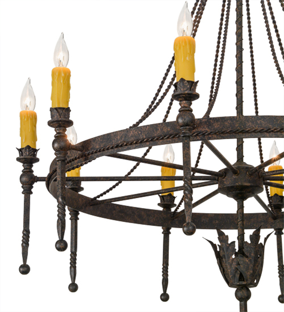 Amaury offers a distinctive look that is rich in styling and artisanship. An Ancanthus leaf crown and finial highlight the decorative spoked ring which is accented with a decorative rope trim. The Coffee Bean finished frame embraces 10 Honey Amber faux candlelights perched on bobeches with extended ballpoint stems. The overall height ranges from 49 to 96 inches as the chain length can be easily adjusted in the field to accommodate your specific lighting application needs. This chandelier and other fixtures are offered in custom sizes; styles and finishes. Handcrafted in our 180;000 square foot manufacturing facility in Yorkville; New York. UL and cUL listed for damp and dry locations.