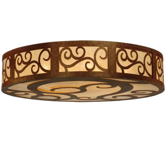 A touch of warm opulence is blended with elegant scroll-like styling. This ceiling fixture offers a lovely transitional style; which is handcrafted with decorative accents and hardware featured in a stunning Autumn Leaf finish. The impressive Dean fixture integrates a Sahara Taupe Idalight diffuser; which projects beautiful ambient illumination. Handcrafted in our 180;000 square foot manufacturing facility in Yorkville New York. This Grand styled fixture is available in custom sizes; styles; colors and dimmable energy efficient lamping such as LED. UL and cUL listed for damp and dry locations.
