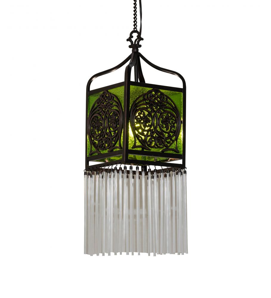 Inspired by Celtic Vines and Floral artwork. The dramatically detailed Celtic Knot Lantern is a stunning piece of craftsmanship. The Celtic medallion hand finished in Mahogany Bronze overlays elegant Kelly Green Granite glass. The Clear Glass Fringe adds a nice touch to this hanging wall fixture. The pendant is enhanced with a Mahogany Bronze finish. Group these mini pendants over a kitchen island; counter or bar to make an alluring design statement. UL and cUL listed for dry and damp locations. UL and cUL listed for dry and damp locations. Each shade is a unique work of art with color variations based on natural ingredients inherent in the glass. Contact us if color matching is critical when ordering multiple items.