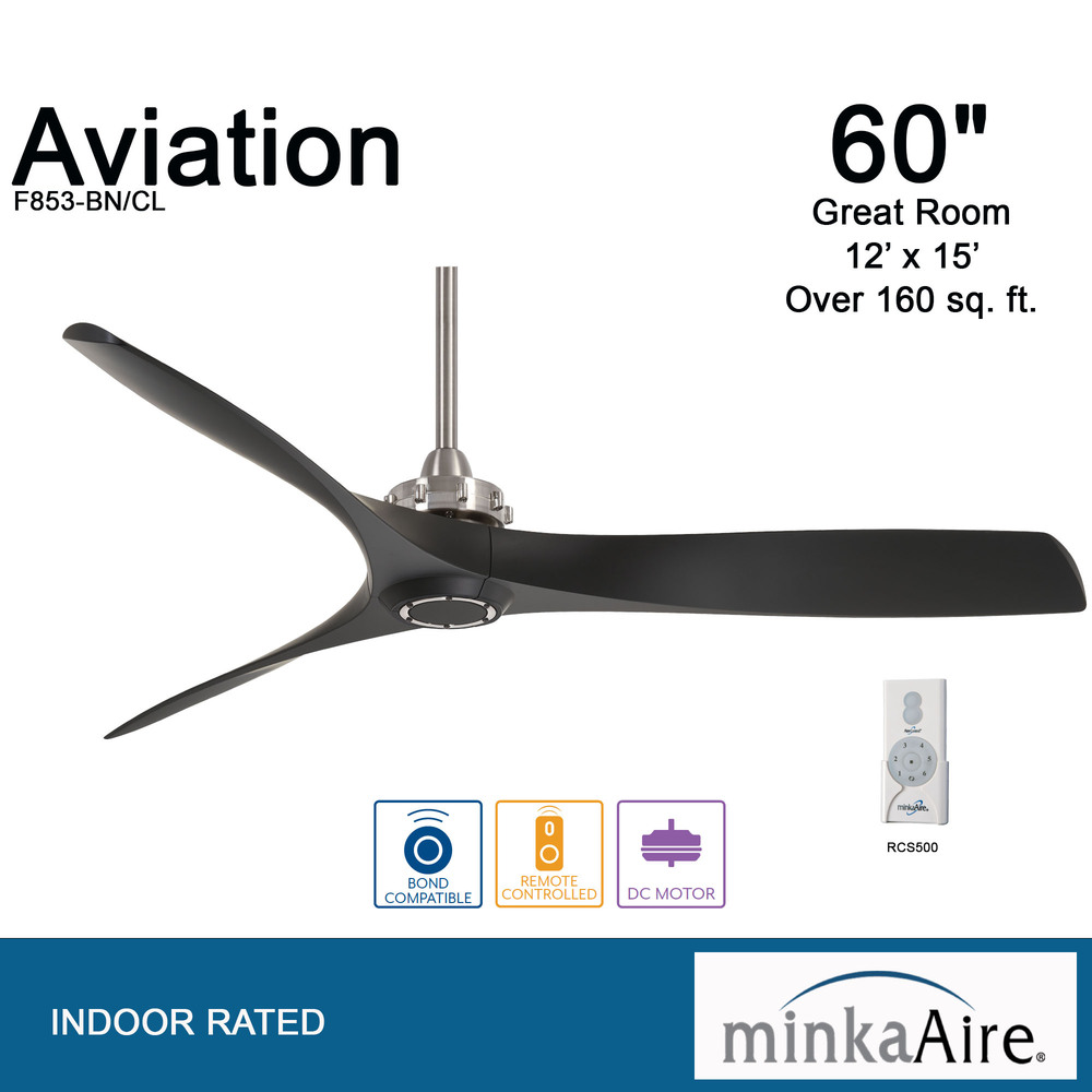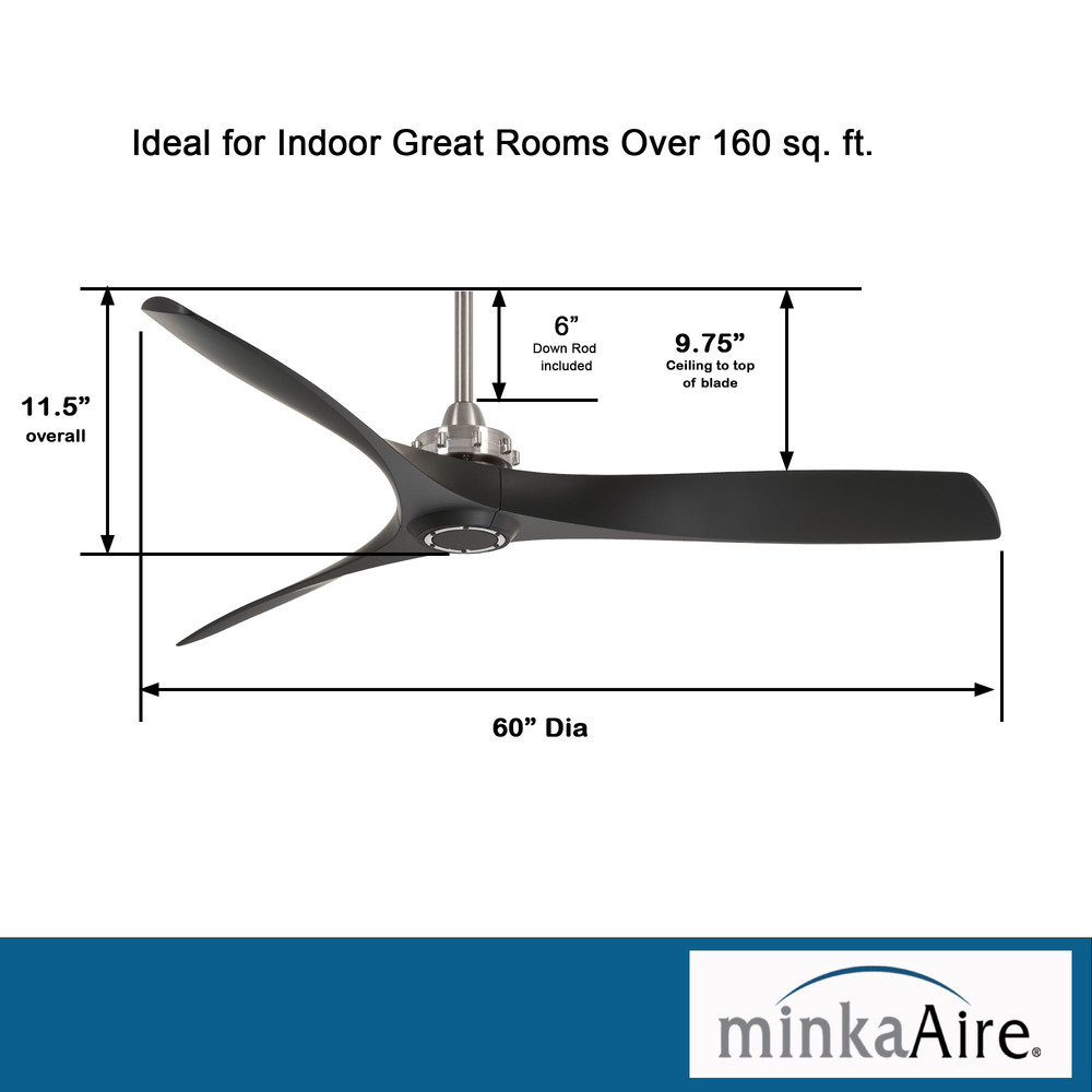 60" 3-Blade Ceiling Fan in a Brushed Nickel Finish with Coal Blades