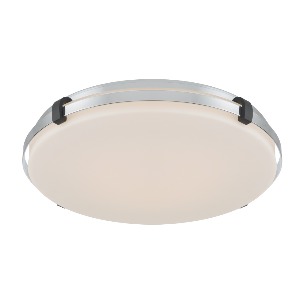 5CCT LED Flush Mount - Chrome and Dark Matte Black with Etched White Glass