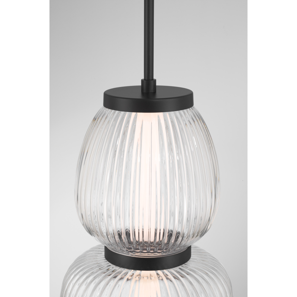 LED Mini Pendant - Dark Matte Black with Clear Ribbed Glass