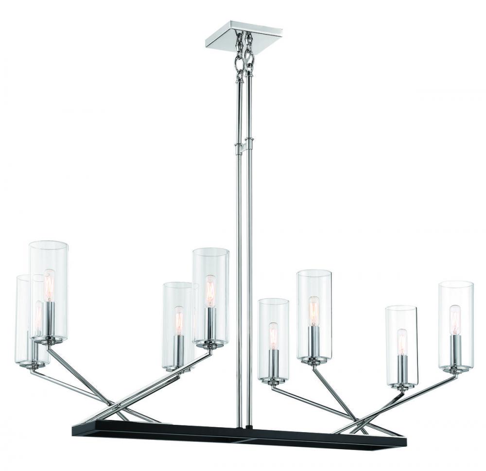 8 Light Island in Polished Nickel with Coal Finish with Clear Glass