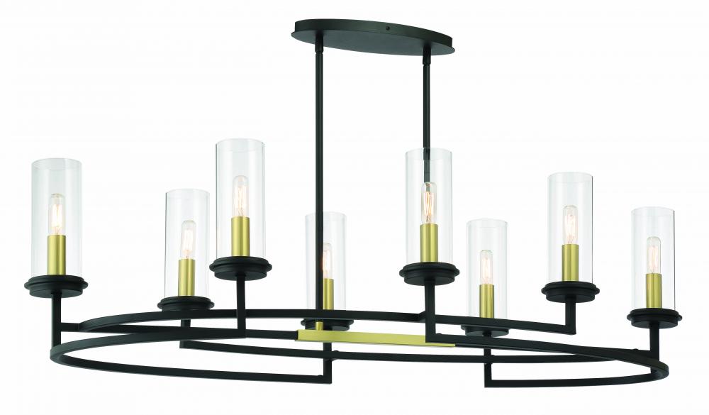 8 Light Island in Sand Coal and Soft Brass Finish with Clear Glass