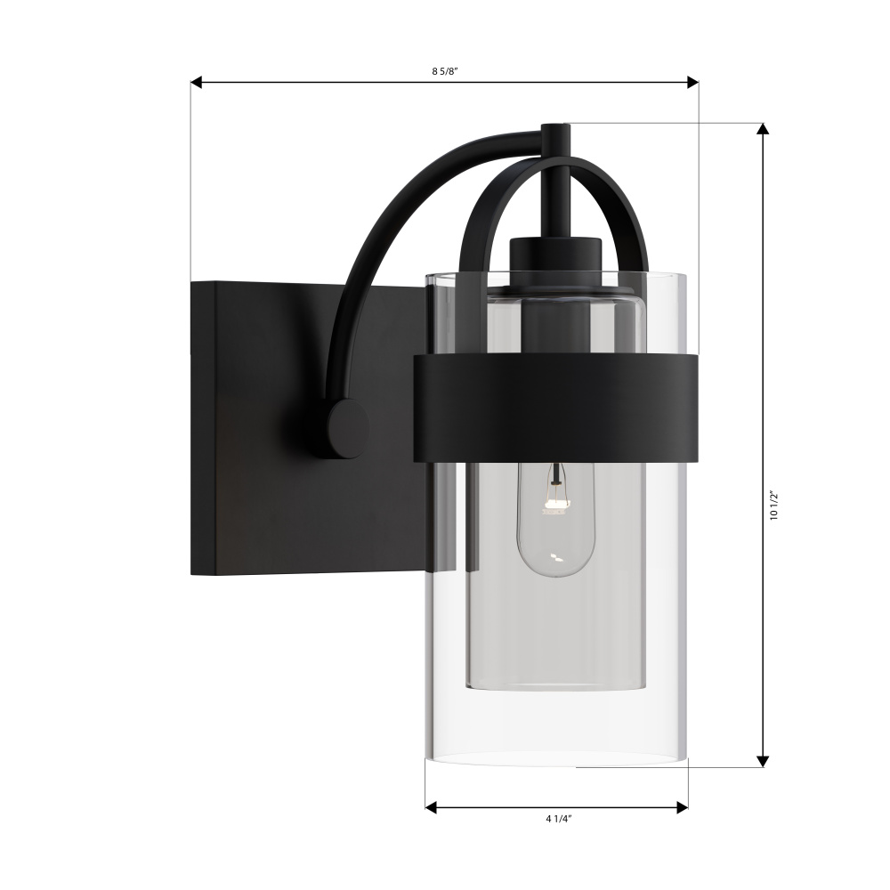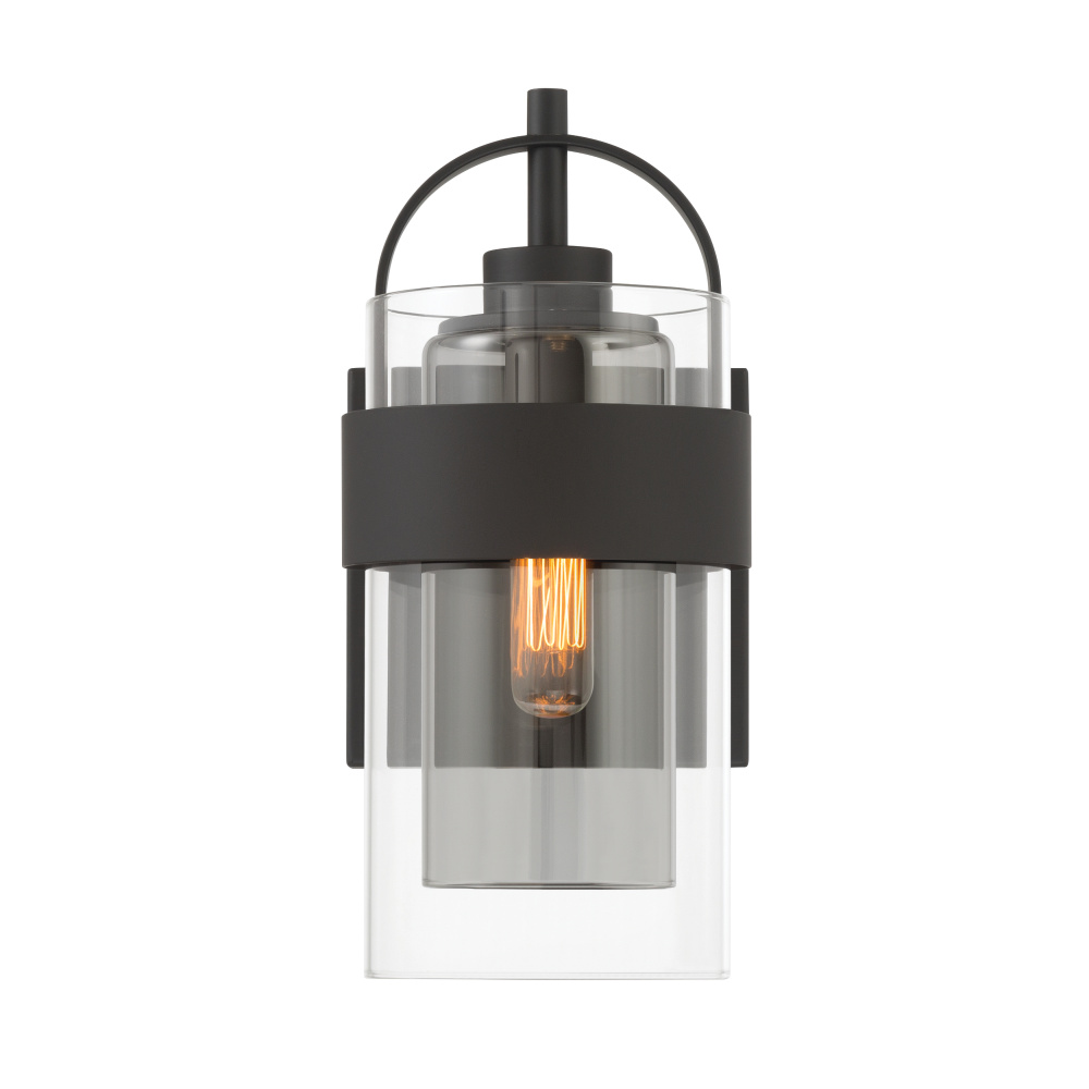 1-Light Bath Sconce - Dark Matte Black with Clear and Grey Glass