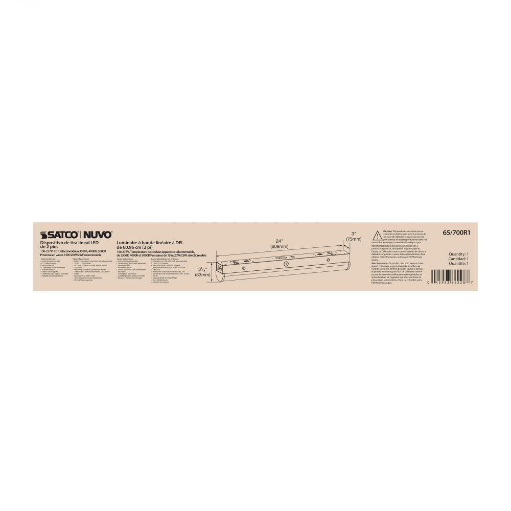 SATCO NUVO's 65-700R1 2-foot LED Linear Strip Fixture offers adaptable lighting for diverse applications. This field-selectable fixture provides wattage options of 15W, 20W, or 25W and color temperature settings of 3500K, 4000K, or 5000K. With a univer