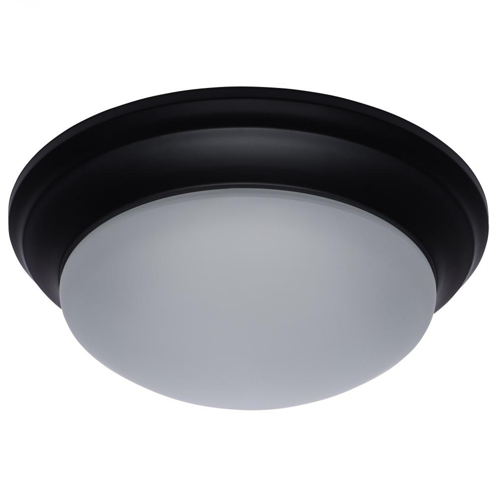 Nuvo's 25-watt, 14 inch flush mount twist and lock fixture features a matte black finish with frosted glass. Damp rated, this fixture is ideal for illuminating kitchens, hallways, bedrooms, and stairwells in residential and multi-family environments. E