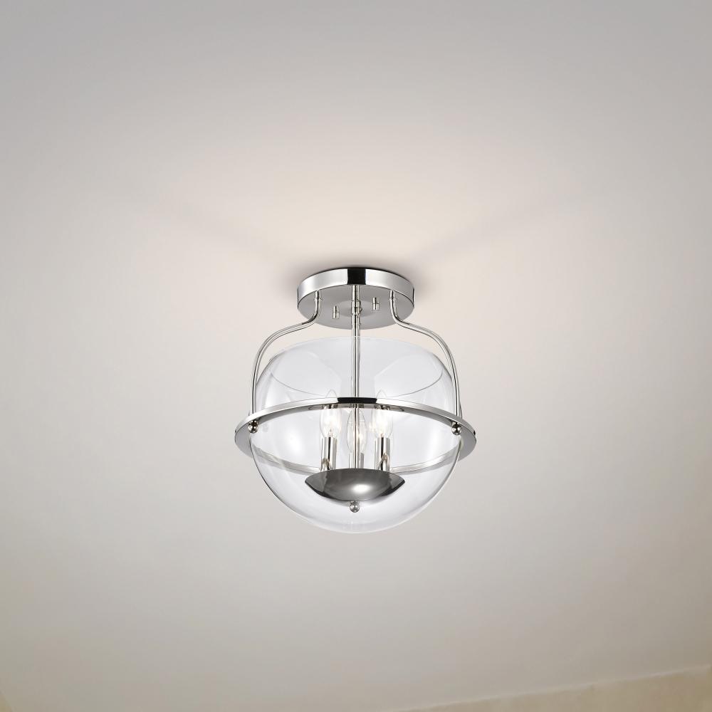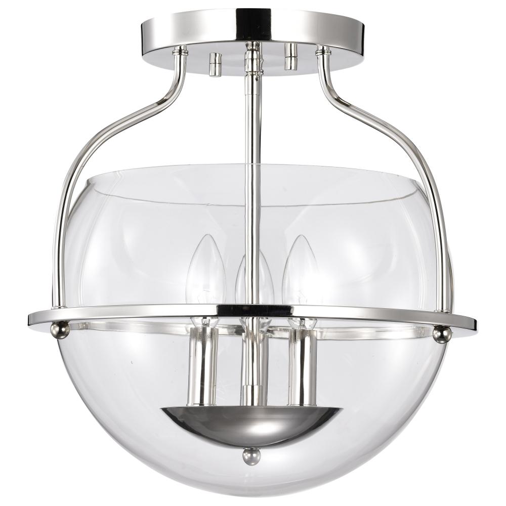 Amado 3 Light Semi Flush Mount; Polished Nickel Finish; Clear Glass