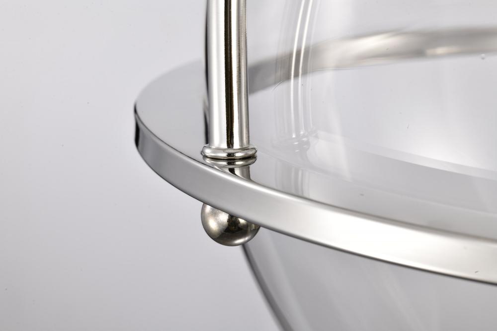 Elegant, transitional allure completes the Amado 60-7822 medium semi-flush mount with it's unassuming style. The sleekness of polished nickel brings graceful refinement and the clear glass bowl delicately showcases the light and is encompassed in grace