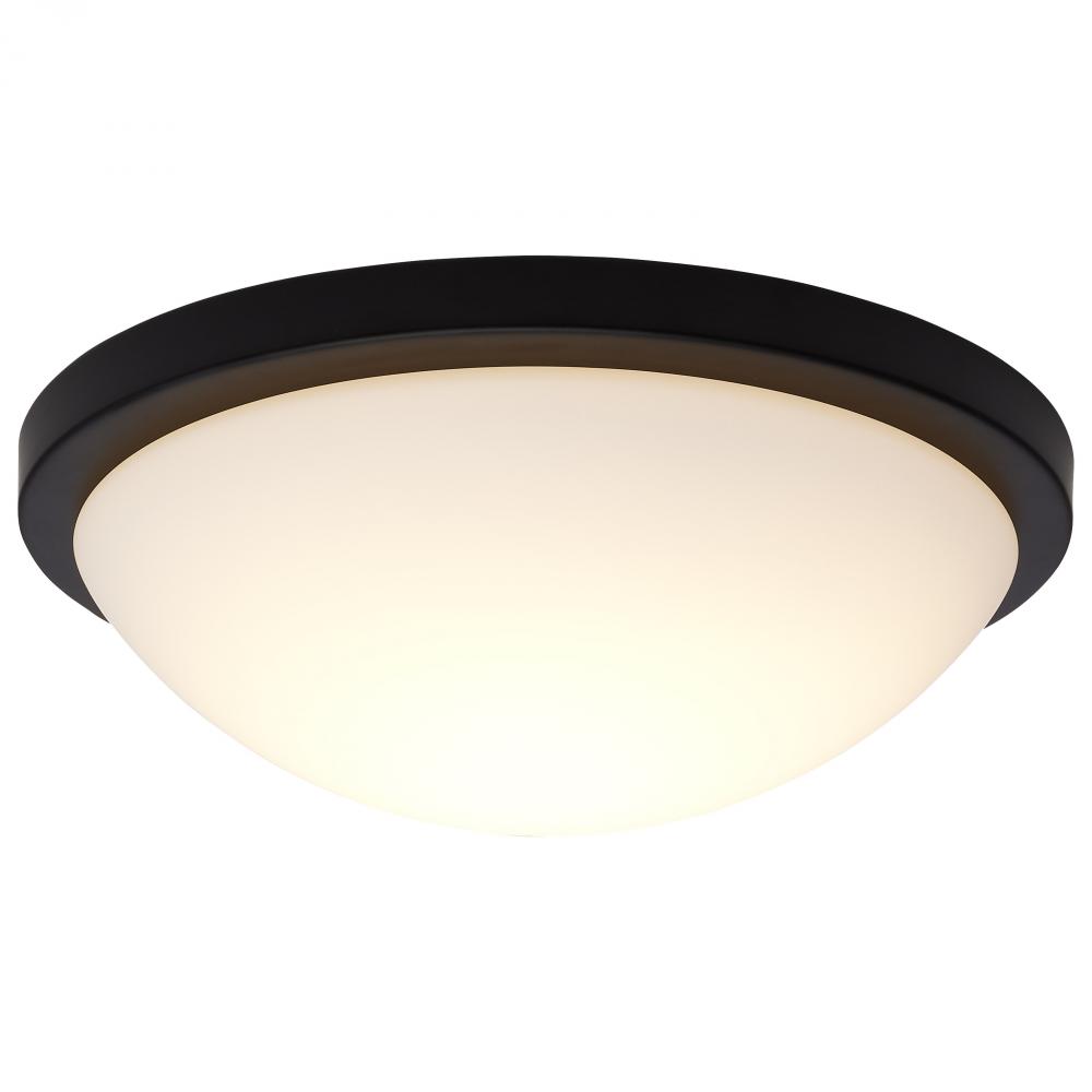 Button; 11 Inch LED Flush Mount Fixture; Matte Black Finish; CCT Selectable; 120 Volts