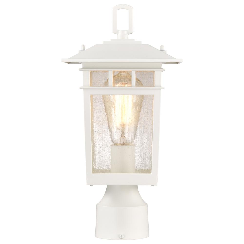 Cove Neck Collection Outdoor Medium 14 inch Post Light Pole Lantern; White Finish with Clear Seeded Glass