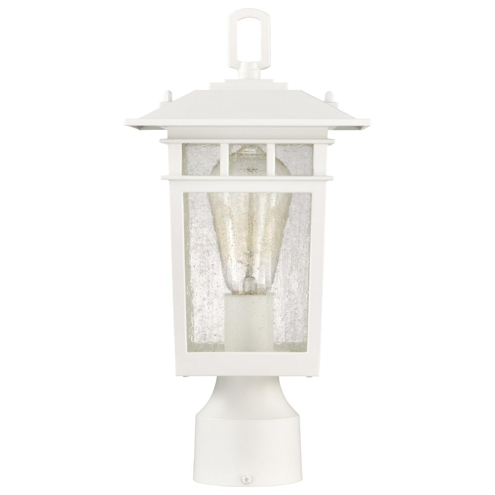Cove Neck Collection Outdoor Medium 14 inch Post Light Pole Lantern; White Finish with Clear Seeded