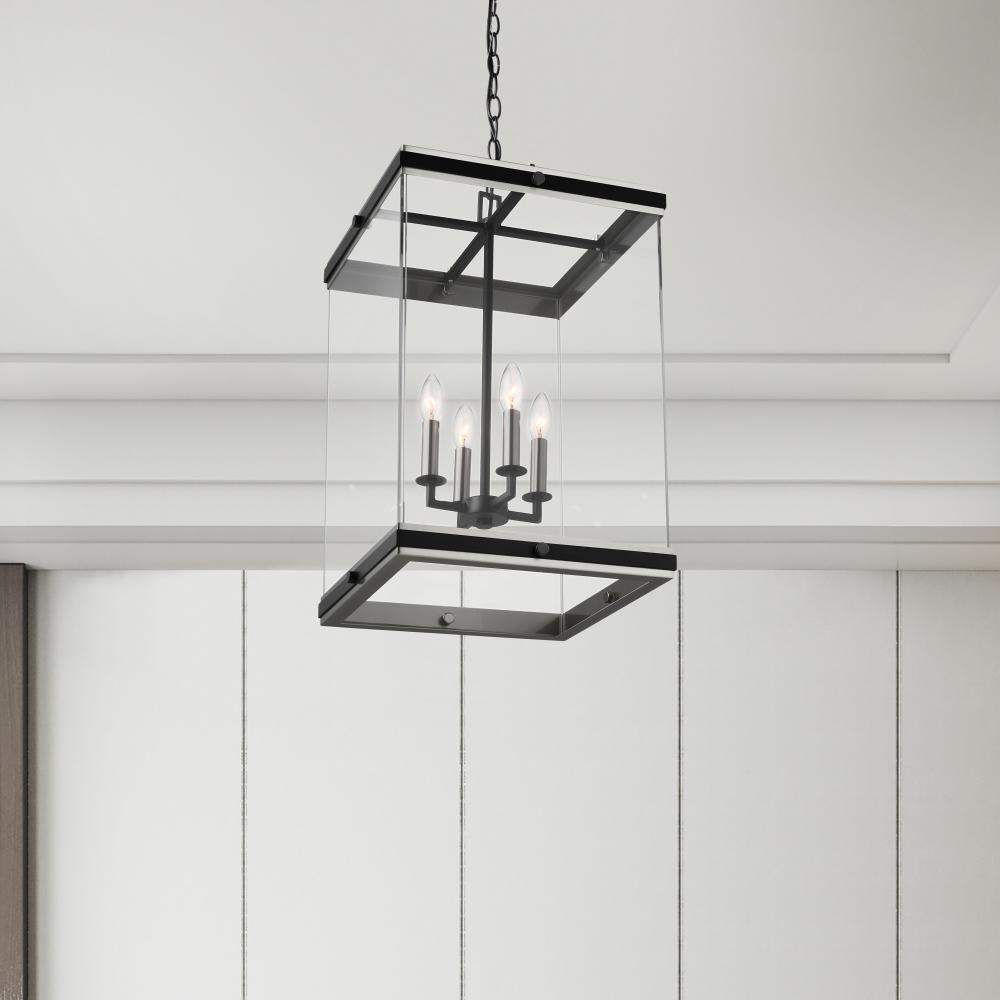 Crossroads; 4 Light Foyer Pendant; Matte Black with Clear Glass