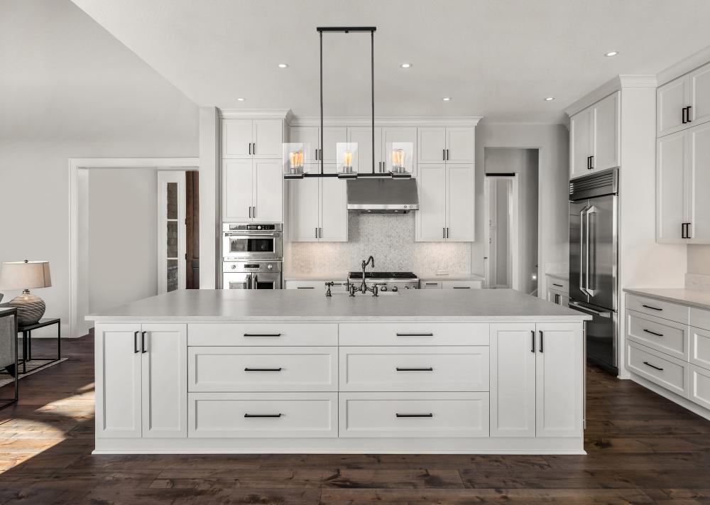 A combination of glass and metal comes together to create the stunning design of the Crossroad 60-7657 island light. The square, clear glass shades showcases the bulbs. The sockets and base are finished in brushed nickel to contrast beautifully with the ma