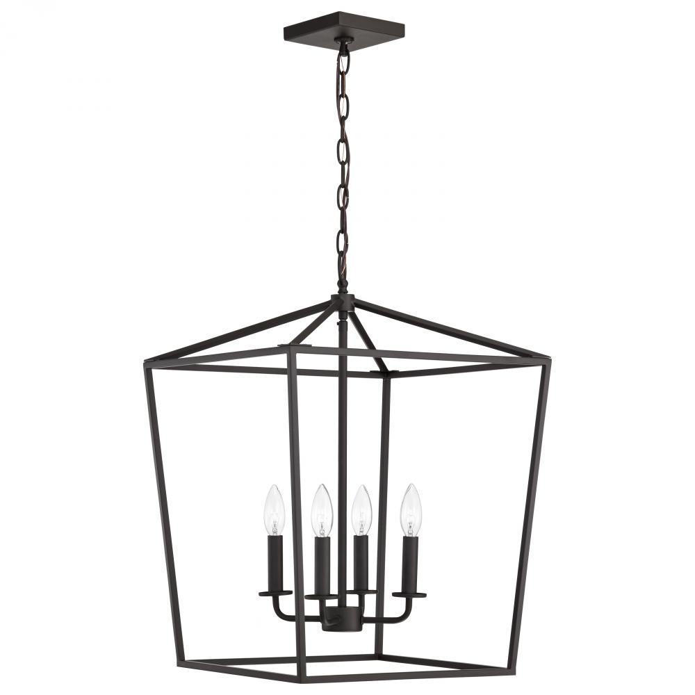 A stylish lighting fixture that combines transitional elements with minimal design, Emma 60-7952 large pendant is a knockout. The richness of the dark bronze finish on the simple framework is highlighted by four candelabra bulbs, exuding elegant charm with