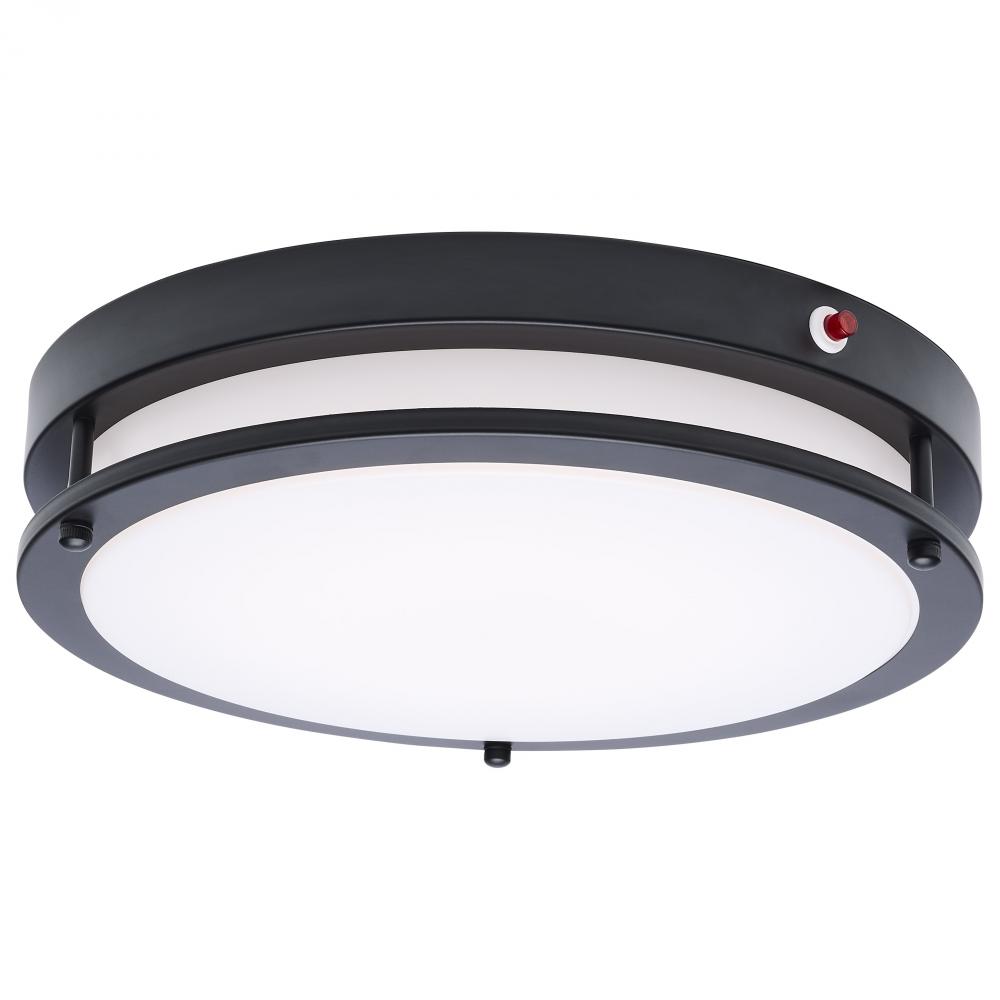 The SATCO NUVO 62-1891 13-Inch Glamour LED flush mount fixture in matte black features a built-in emergency battery backup that provides up to 90 minutes of illumination during power outages-offering critical reliability with an elegant design. An integrat