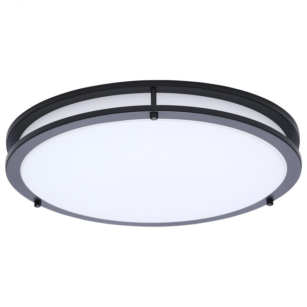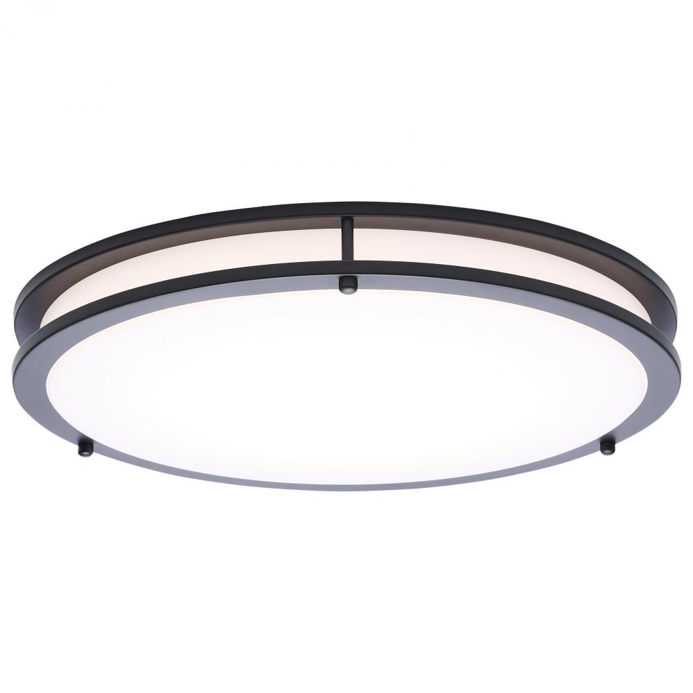 The SATCO NUVO 62-1977 Glamour 17-inch Round Flush Mount in White with a Black Finish delivers sleek, modern lighting with 5 CCT selectable technology (2700K–5000K) and 90 CRI illumination for enhanced color rendering. This 25-watt fixture replaces 200W