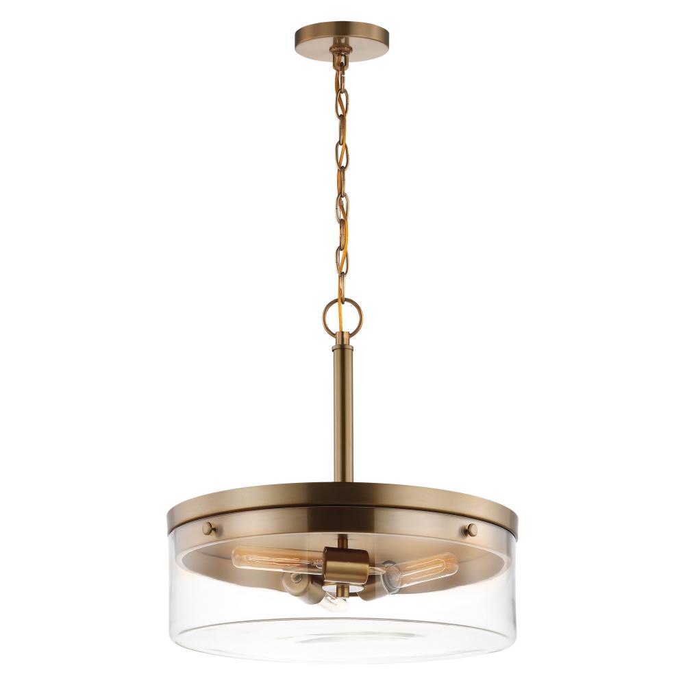 Intersection; 3 Light; Pendant; Burnished Brass with Clear Glass